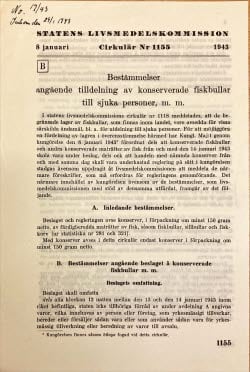 Idag skulle många av oss (kanske) ha rynkat på näsan åt en tallrik fiskbullar vid sjukhussängen, men i ett Sverige märkt av kriget var detta uppenbarligen en så pass viktig matvara att den var förbehållen samhällets mest utsatta.
